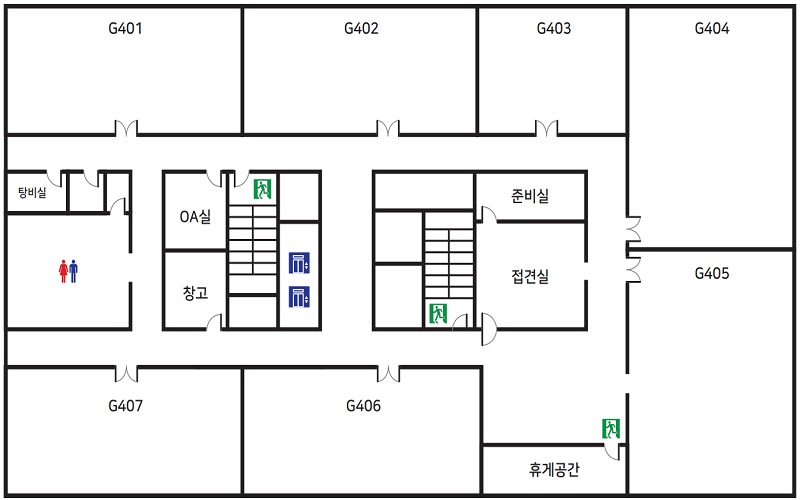 게스트하우스(1인 21실, 다인 1실), 체력단련실